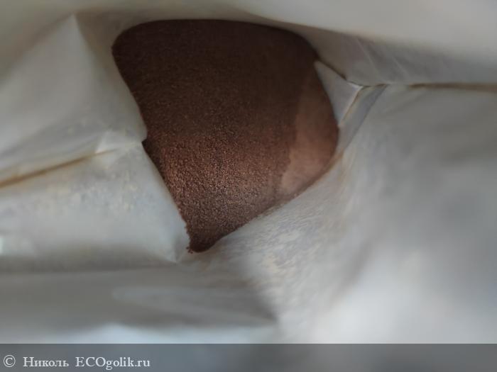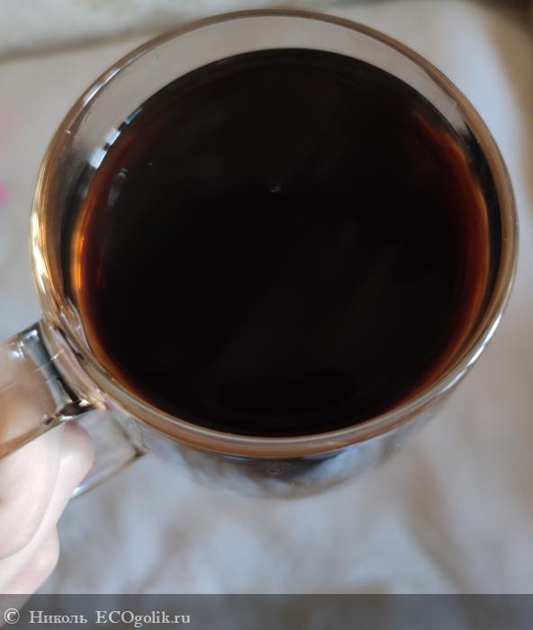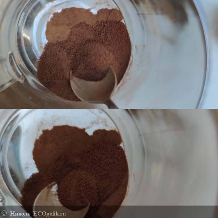 Почти, как кофе по цвету. Он тёмно-коричневого цвета. Напиток с лёгкостью и быстро растворяется в холодной или горячей воде, молоке.