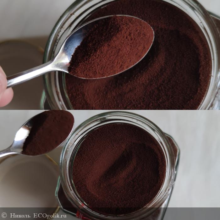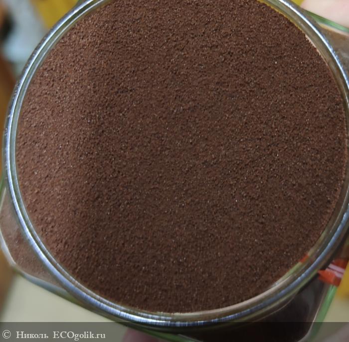 Сам цикорий тёмно-коричневого цвета. Порошок этого напиточка однородный, мелкодисперсный. Он не имеет комочков. Сам сухой, рассыпчатый. Быстро и полностью растворяется в воде.