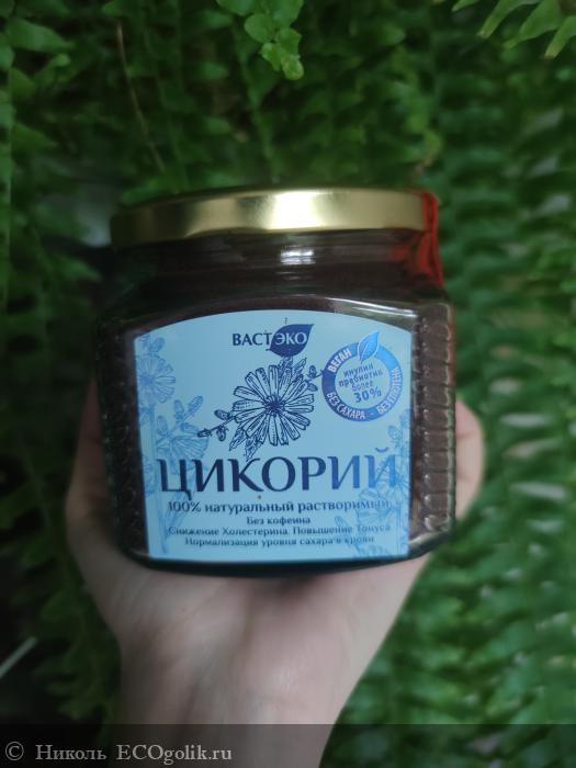 Я очень люблю цикорий.и в этом раз решила заказать от бренда ВАСТЭКО. Он чистый, без добавок, без глютена, без сахара. На влагоустойчивой наклейке, которая наклеена на стеклянную, прозрачную банку, есть изображения цветков цикория.