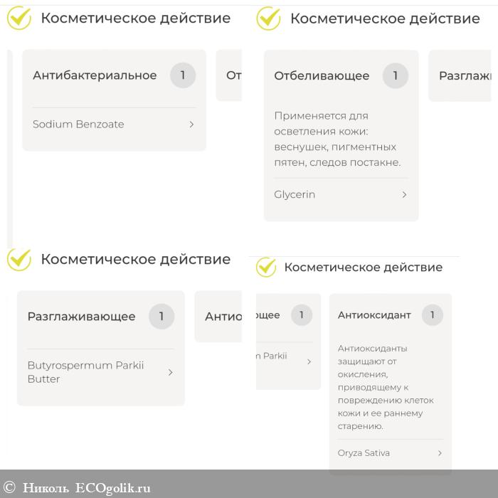 Прикреплю разбор составчика, где расписаны компоненты по косметическому действию.