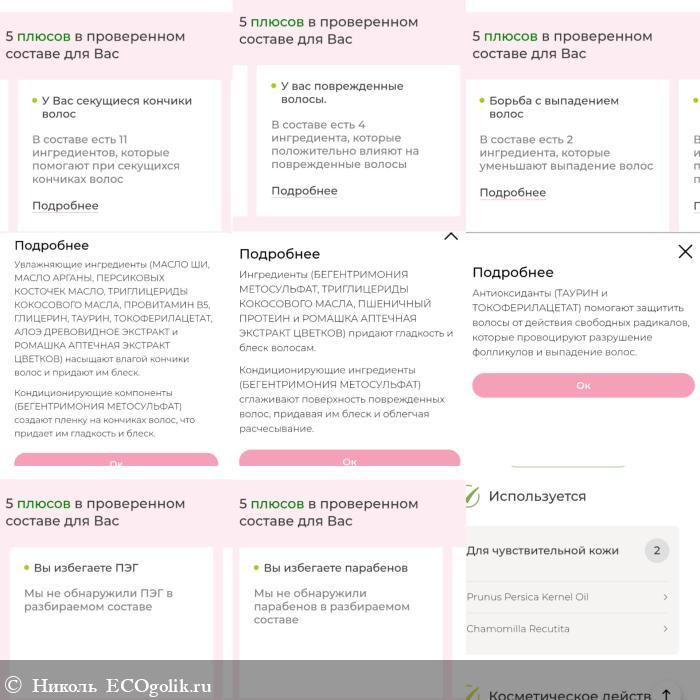 В описании напечатано, на что направлен этот бальзам, что он делает с волосами, расписаны действия нескольких компонентов.