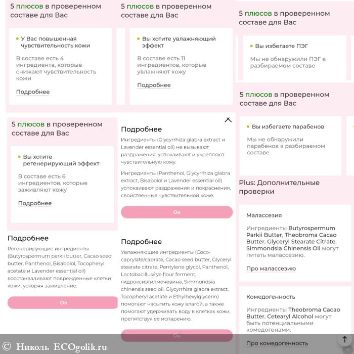 Сначала дано подробное описание этого уходового продукта, в котором расписаны действия нескольких компонентов, входящих в его состав.