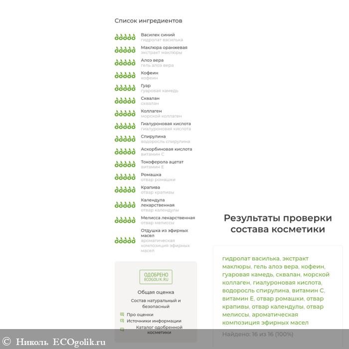 Состав прекрасный, натуральный, безопасный. В нём нет синтетических отдушек, искуственных красителей, консервантов. В составе даже не вода на первом месте, а гидролат василька, который имеет много полезных свойств.