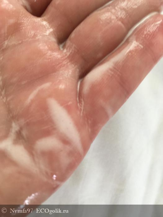 Пенообразование. Вот здесь отдельно. Если просто пытаться распенить его в руках, то это вряд ли получится. Он скорее как гидрофильное масло, превращается в молочко от соприкосновения с водой