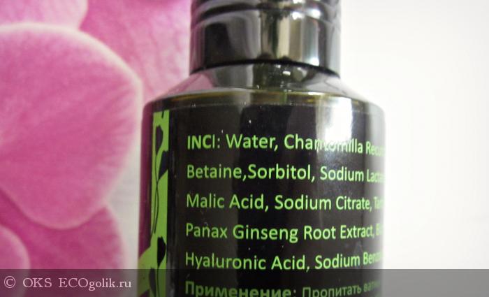 Тоник находится в пластиковом флакончике черного цвета. Мне очень нравится внешний вид флакона, он в черно-зеленых тонах, смотрится даже больше мужским, все лаконично, сдержано. Он своим дизайном ежедневно украшает мой туалетный столик.