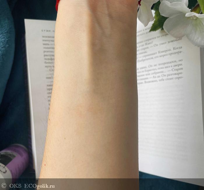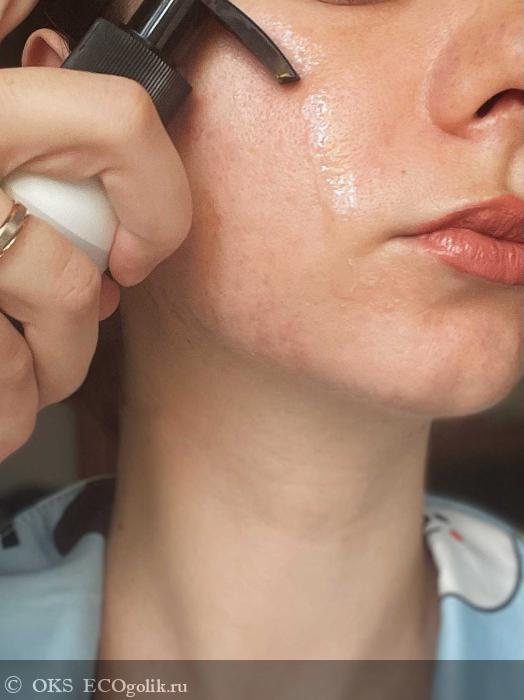 На лицо я использую два нажатия на дозатор, но здесь мне достаточно было одного. Распределяется масло хорошо. При распределении видно, что пудра сразу же поддалась очищению.