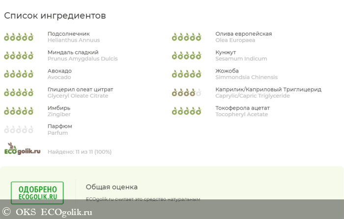Он полностью натуральный и Экоголик его одобрил. Единственное не раскрыто происхождение парфюма, но доверяя марке, верю, что он натурального происхождения.