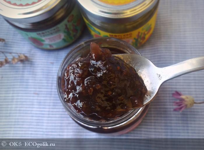 Консистенция мягкая и лишь слегка желейная, мне больше напоминает малиновое варенье. Даже на вид напоминает варенье. Внутри находятся малиновые косточки и кусочки морской капусты.