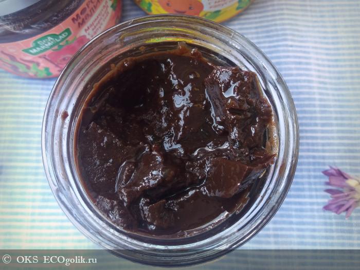 Как только я открыла баночку то сразу увидела однородную консистенцию. Текстура желейная и густая, распределяется на тосте сложнее. Аромат очень приятый шоколадный.