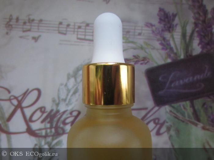 Дозатор в виде пипетки, удобный в использовании. Наконечник пипетки сделан из резины, а сама крышечка в золотистая. Здесь все очень красиво.