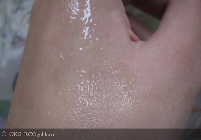 Консистенция жидкая, слегка гелевая и совершенно нежирная. Оттенок имеет желтоватый без каких либо вкраплений.