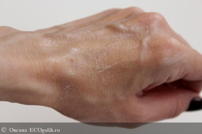 При распределении по коже чувствуется легкая текстура, слегка гелевая.