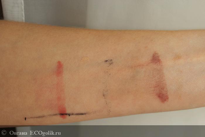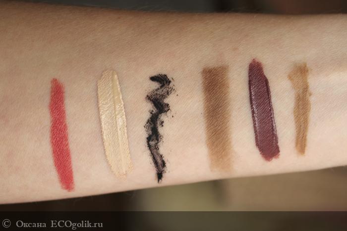 Я нанесла на кожу тушь и тени для бровей, тушь для ресниц, жидкую и обычную помады.