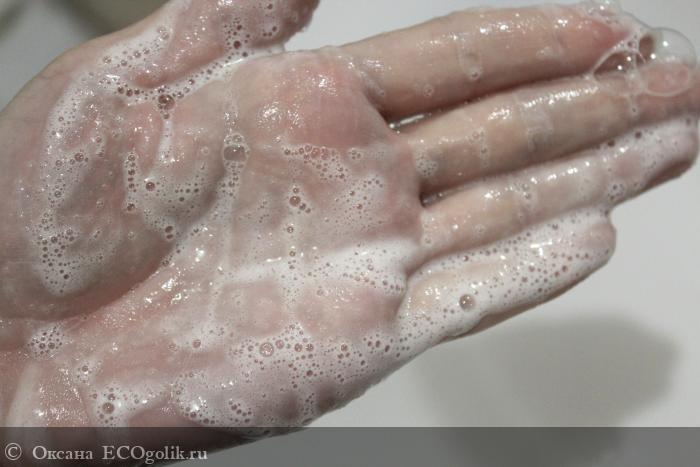 Гель очень хорошо пенится. В применении очень нежный и покладистый.