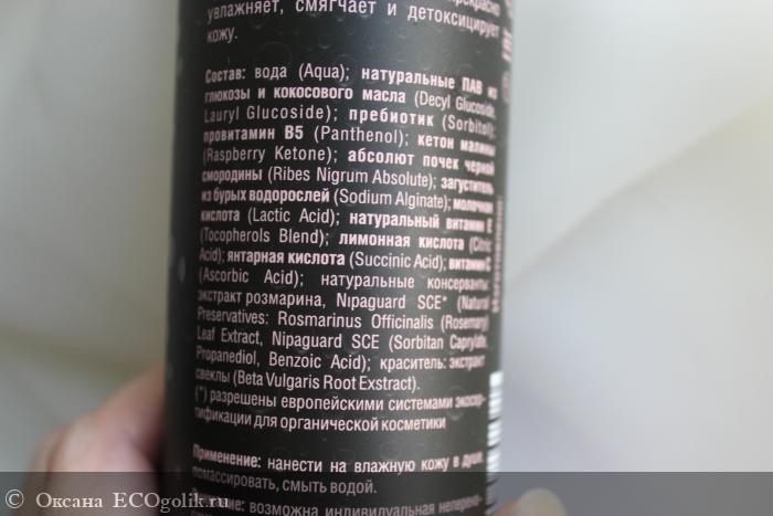 В составе геля много полезных компонентов, которые благотворно влияют на состояние кожи. Там и натуральные ПАВы, и витамины, и кетон малины, и абсолют почек черной смородины.