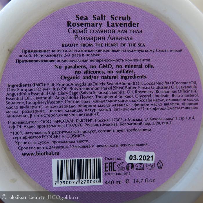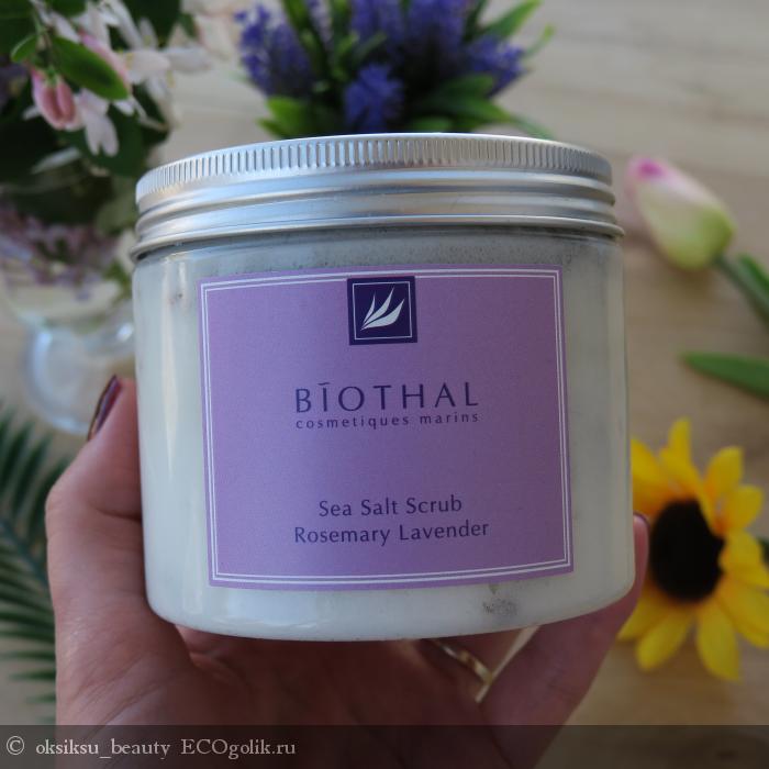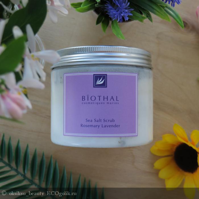 Хочу рассказать об одном из тех скрабов, что сейчас использую. Это соляной скраб Розмарин и Лаванда от бренда Biothal.