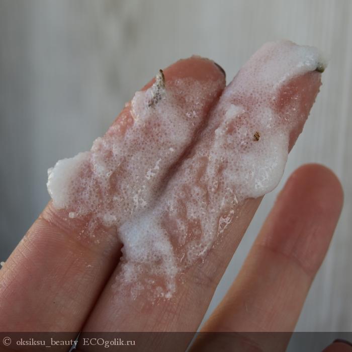 Скрабирующие частички мелкого помола, но растворяются не так быстро, что большой плюс. Скрабируют очень хорошо, не повреждает кожу и не вызывает раздражение.