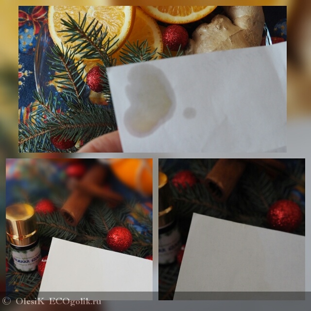 Нанеся несколько капель на бумагу и подождав какое-то время, можно увидеть, что осталось желтоватое пятно. У цитрусовых масел это допустимо, поэтому нужно быть аккуратными, чтобы оно не попало на светлые вещи.