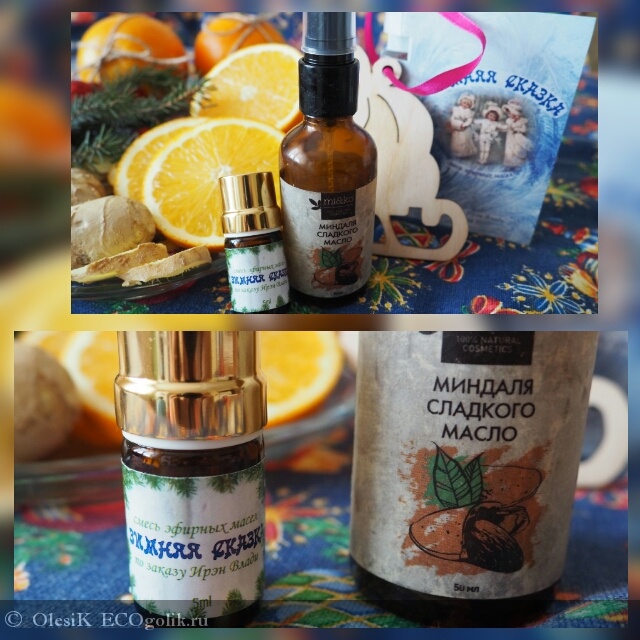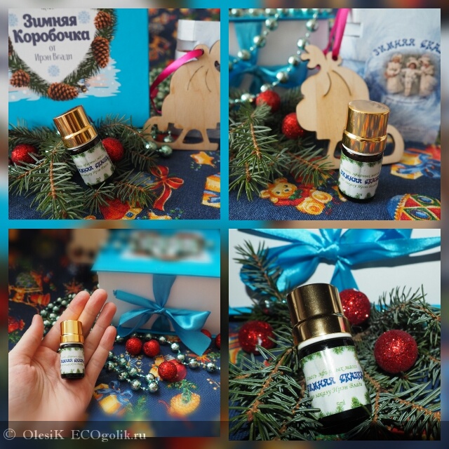 Зимняя Коробочка от Ирен Влади, подарок от любимого), именно в ней и находилась эта чудная бутылочка с божественным ароматом масел (еловая хвоя, сладкий апельсин, имбирь). В ней, помимо этой эфирки, были различные баночки, пузырьки - все для волос. Но, так как это Зимняя Коробочка и масло имеет название "ЗИМНЯЯ СКАЗКА", то в ней оно просто обязано было находиться😉. И сегодня все овации только смеси эфирных масел "ЗИМНЯЯ СКАЗКА ", от производителя Мастерская Олеси Мустаевой, завоевавшиго сердца многих девушек, но не без участия прекрасной Ирен Влади😊.