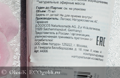 Данное средство личной гигиены имеет 2 сертификата: NATRUE, BIO.