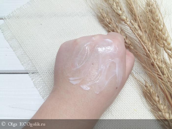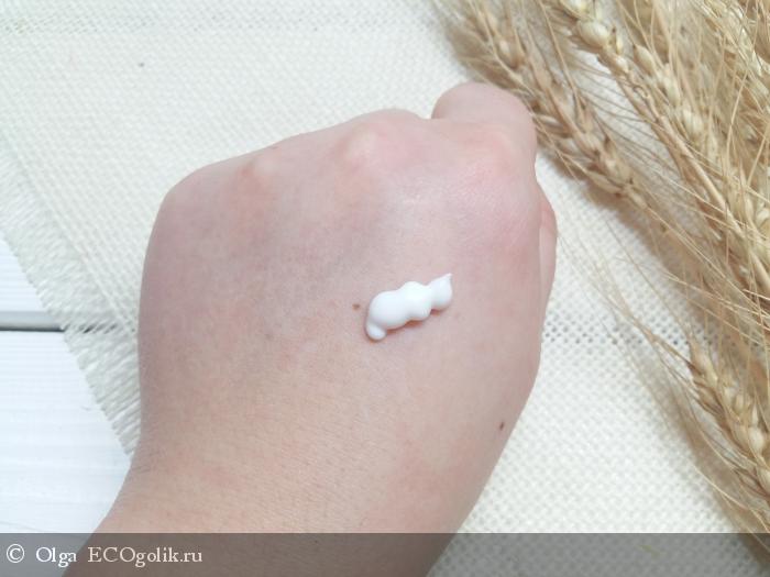 Сам крем белого цвета, очень нежной, легкой консистенции, довольно маслянистый.