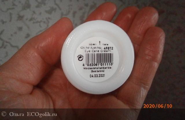 В баночке из опалового стекла находится 15 мл крема для век. Когда я впервые взяла его в руки он мне показался совсем крошкой.