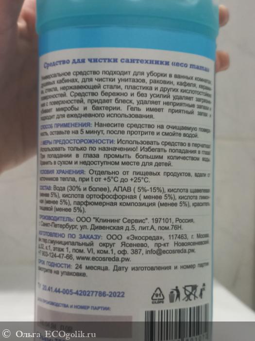 Гель для чистки сантехники от бренда Ecomama отлично справляется со всеми заявленными проблемами и, естественно, заслуживает высший балл. Отличное рабочее средство. Рекомендую к покупке.