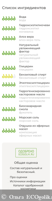 Тоник отлично освежает кожу, морская соль в его составе насыщает её минералами и способствует регенерации.