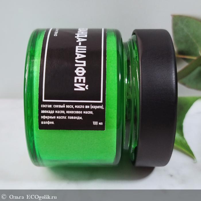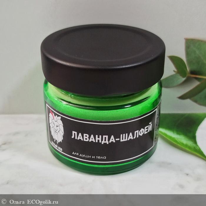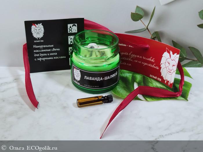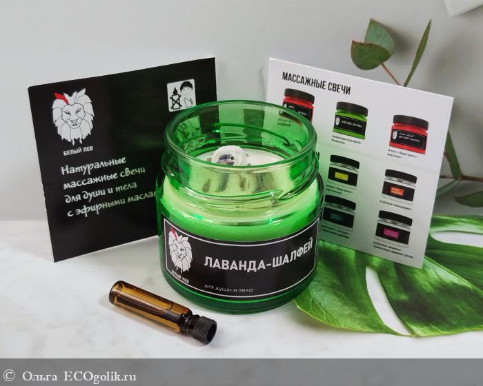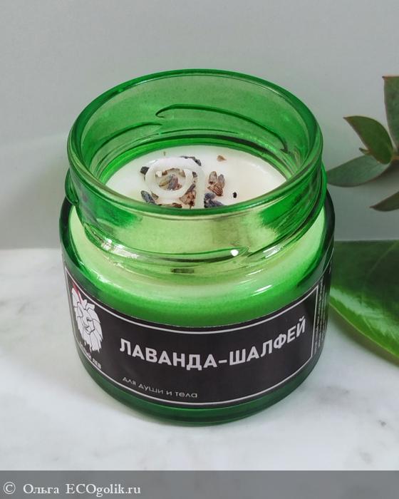 У меня массажная свеча "Лаванда-шалфей" от бренда Ароматы планеты. Свеча находится в картонной коробочке с брутальным оформлением.