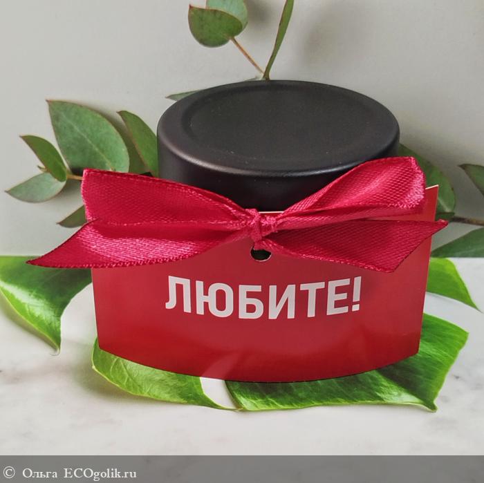 После снятия бумаги эстетические чудеса продолжаются. К баночке прикреплён картонный элемент с надписью