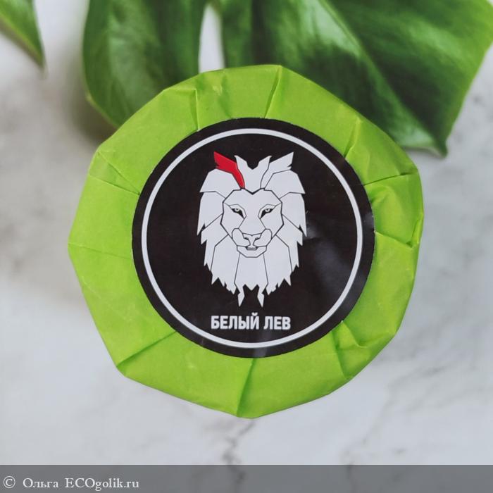 Изделие очень аккуратно обёрнуто в бумагу приятного салатового оттенка с наклейкой в виде иллюстрации с белым львом.