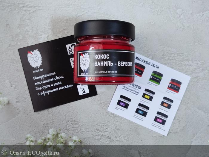 Сегодня я хочу рассказать о своём чудесном приобретении, это Массажная свеча с ароматом "Кокос - ваниль - вербена" от бренда Ароматы планеты. Приобрела товар я на маркетплейсе Ozon. Предмет находится в картонной коробочке.