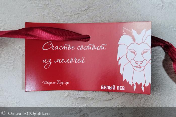 Под красной бумагой находится ещё один слой бумаги, закреплённый наклейкой с логотипом в виде белого льва.