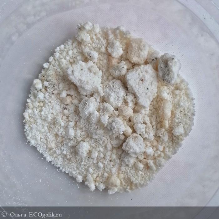 Сухая смесь обладает молочным оттенком. Иногда, попадаются комочки с более тёмными включениями.
