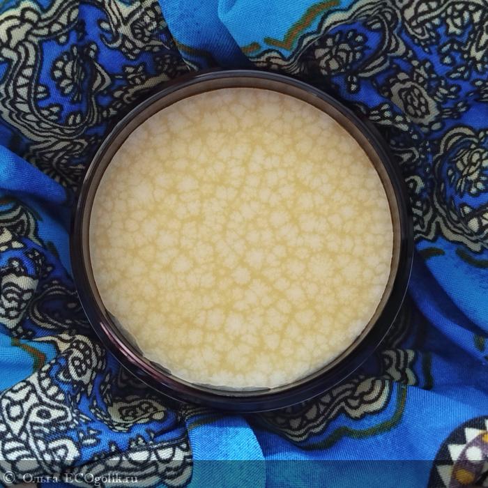 Уходовый продукт обладает густой структурой, у него светло-жёлтый оттенок, внешне, присутствует узор в виде точек.