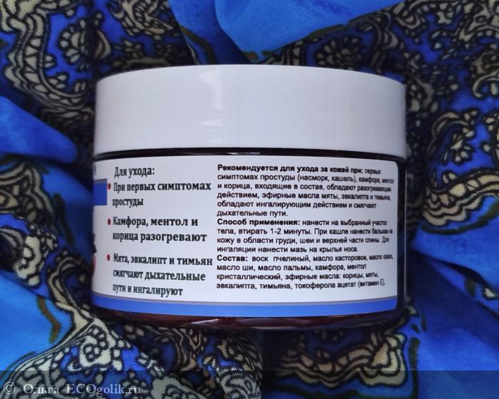 Уходовый продукт предназначен при первых симптомах простуды, обладает лёгкими разогревающими свойствами, а также смягчает дыхательные пути при насморке. По сути, данный бальзам это аналог знаменитой "Звёздочки", только с более деликатным действием.