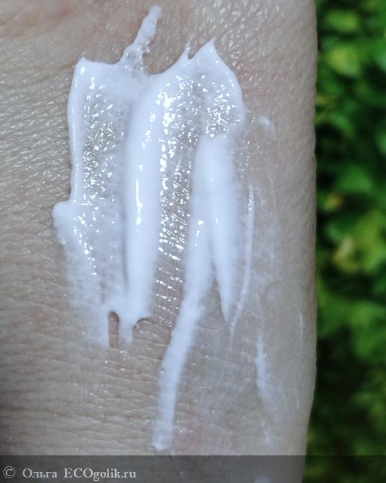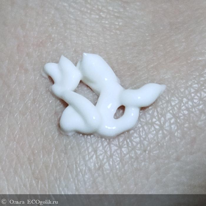 Крем белого цвета, он в меру густой, не слишком жирный, с приятной структурой.