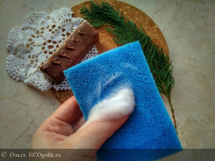 Наношу на влажную губку и ополаскиваю под струёй воды.