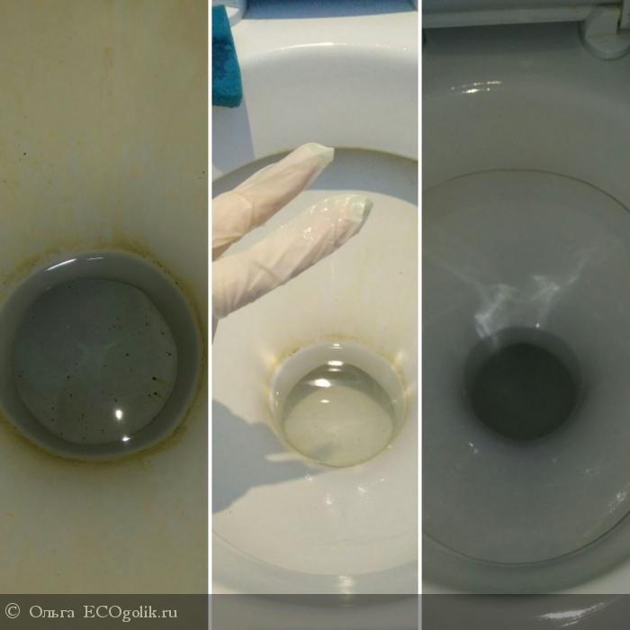 И показываю наглядно унитаз ДО - ВО ВРЕМЯ - ПОСЛЕ (пожалуй это самые грязные фотки в моих отзывах, не каждый день унитазы фоткаешь)