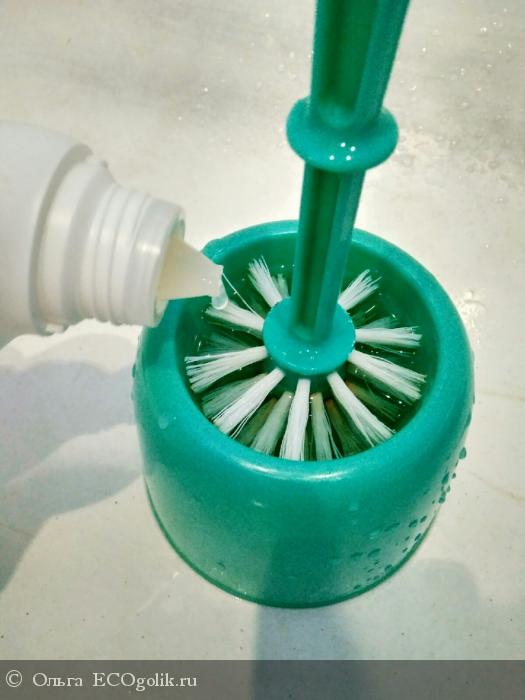 - Ёршик! Ох, ну не буду в подробностях рассказывать зачем заливать в ершик )) Дак вот, немного добавив геля, помешав в стаканчике - он растворяется, образуя ещё и аромат эвкалипта. Да-да, такой способ может заменить еще и освежитель, если регулярно добавлять средство в ёршик.