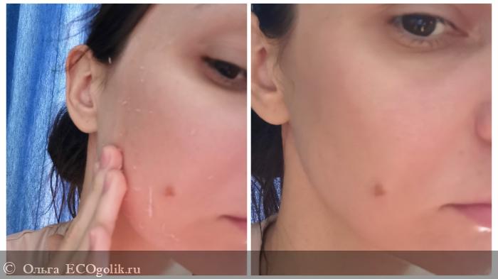 После применения кожа не стянута, матовая, без жирного блеска, тон и поверхность более ровные.