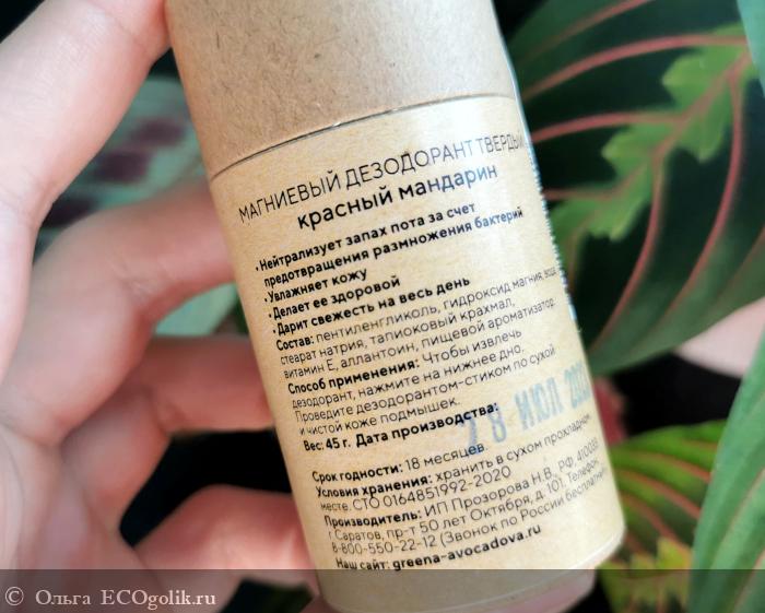 Дезодорант бережно ухаживает за кожей, не закупоривает поры и не сушит кожу. Состав полностью натуральный, не содержит соду, спирт и соли алюминия. Не вызывает чувства стянутости и не стекает реками , как спрей при обильном применении.