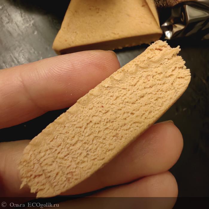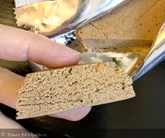 По твердости этот батончик полностью похож на предыдущий. Только темнее. Но вот вкус мне понравился меньше всех. Мне показалось, что прям горчит в послевкусии. Я почувствовала только какао, без каких-то интересных оттенков.