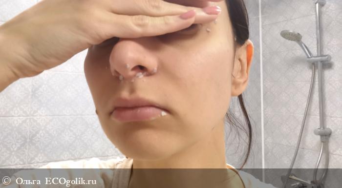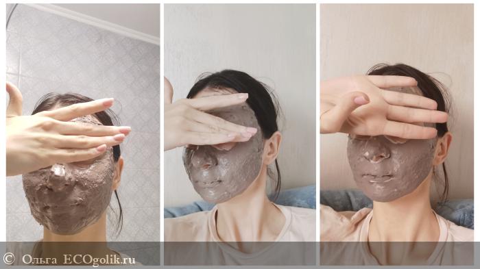 Первое фото - сразу после нанесения, второе - через 10 мин, третье через - 30 мин. У меня немного менялось освещение, но в целом маска побелела совсем чуть-чуть .