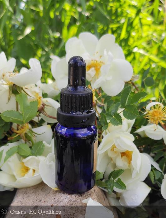У меня вначале была мини версия 15 мл масла розы абсолю в флаконе из кобальтого стекла и пипеткой.