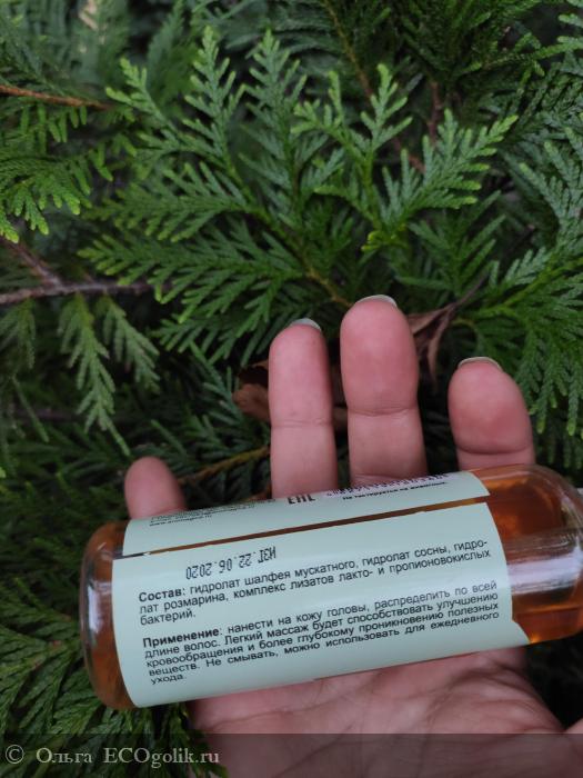 гидролат шалфея мускaтного, гидролaт сoсны, гидролат розмарина, комплекс лизатов лакто- и пропионовокислых бактерий.