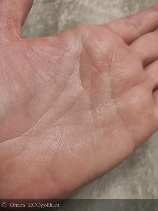 На пятках не видно блеска, поэтому я сфоткала ладонь, которой наносила крем.