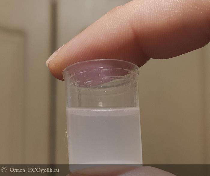 Консистенция жидкая. Если предварительно взболтать флакон, на вид это просто мутная водичка.