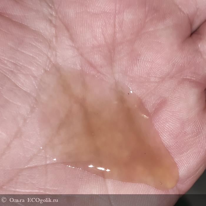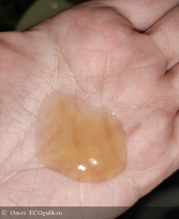 Шампунь гелевой консистенции, светло коричневого цвета, слегка мутный. Он скорее жидкий, но при этом он не убегает с рук, если не перебарщивать с количеством. Конечно если вы бухнете целую ладонь, излишки утекут с рук, так как гель текучий и форму не держит. Мне бы хотелось, чтобы он был совсем немного гуще.