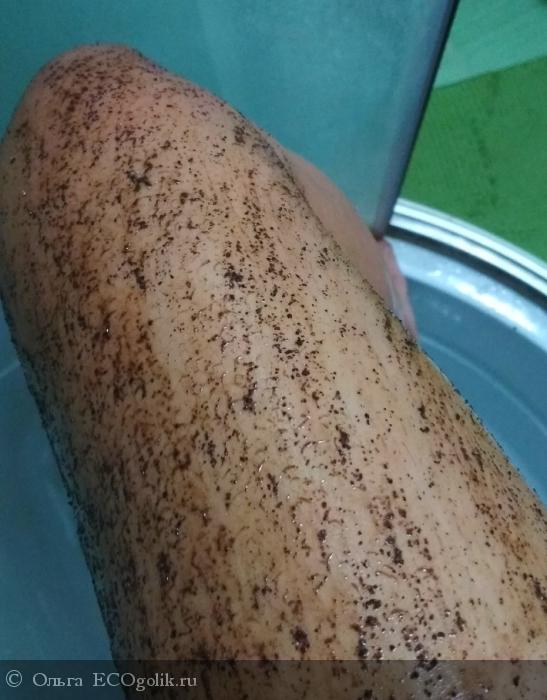 За счёт того, что в скрабе большой процент кофе, скрабировать им тело можно пока не отсохнут руки.